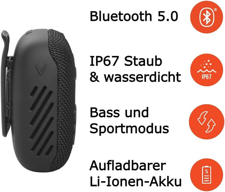 - Geniesse deine Musik immer und überall: mit den Clip einfach an deiner Kleidung oder am Rucksack befestigen oder mit der Lenkerhalterung mühelos am Lenker von Fahrrad, Roller oder Motorrad andocken