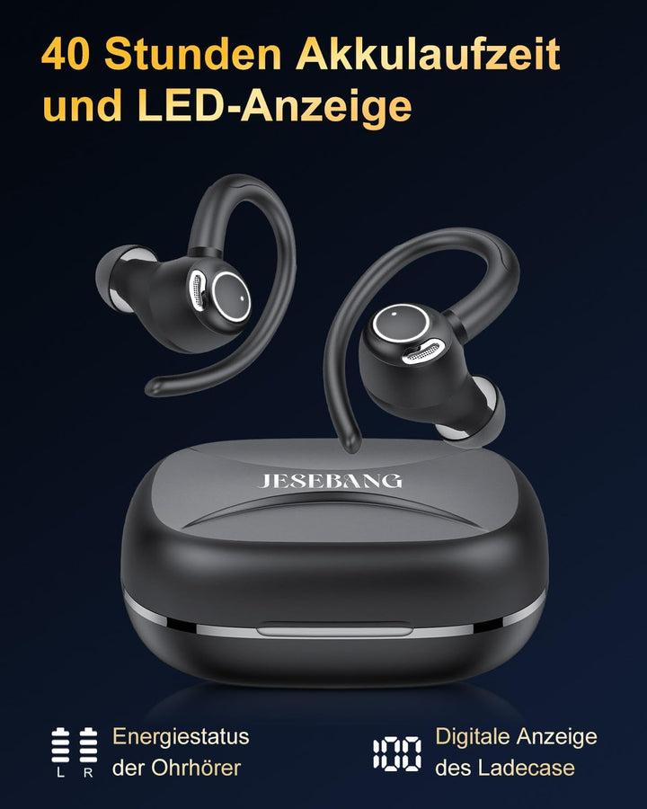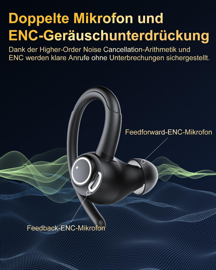 - Sport Ohrhaken-Design: Ausgestattet mit 3 Paar Silikon-Ohrstöpseln unterschiedlicher Grösse sind die wireless kopfhörer ergonomisch geformt, sehr stabil und leicht. Das weiche Ohrhaken-Design (mit elastischer Elastizität) lässt die kopfhörer immer