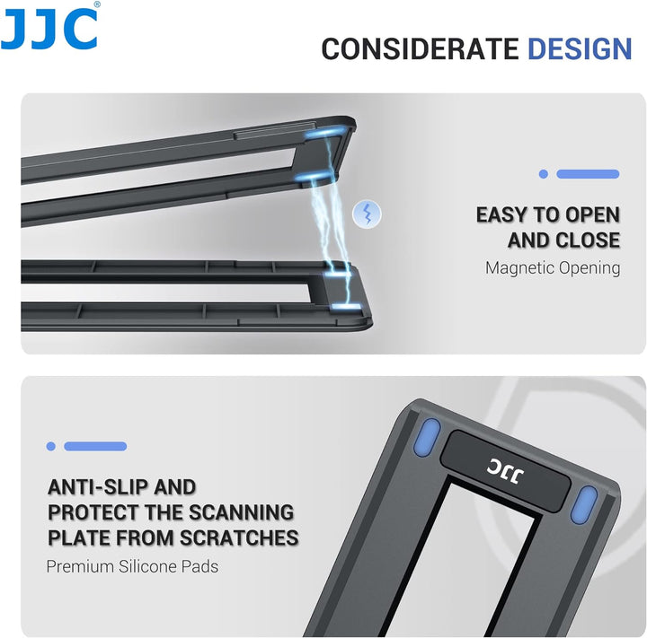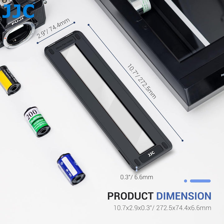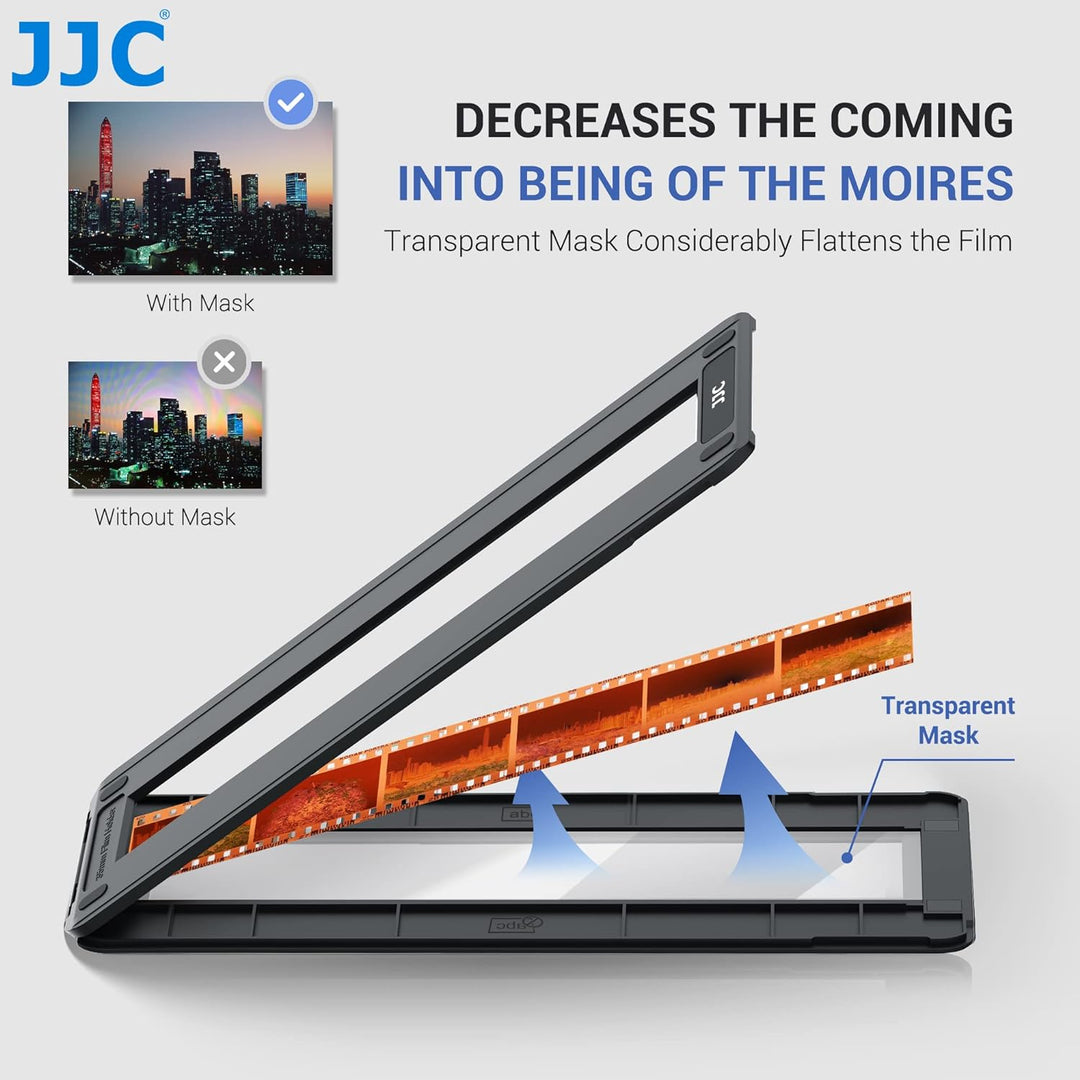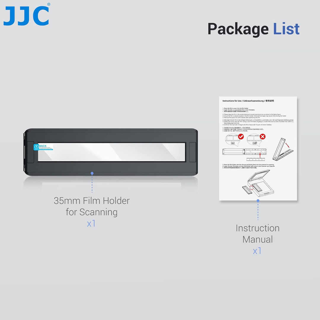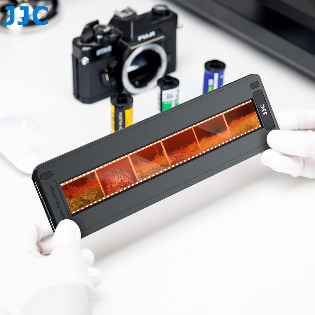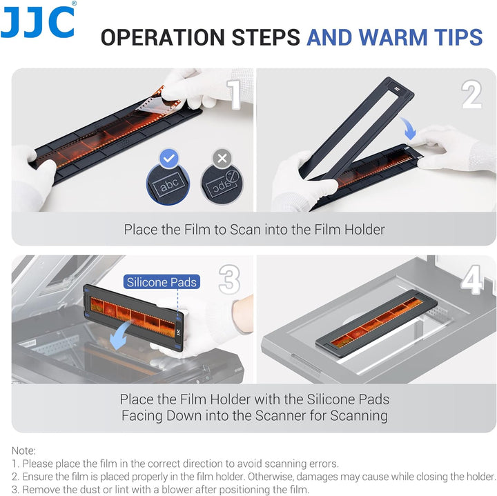 - Hinweis: Legen Sie die 35-mm-Filme mit der gleichen Position wie abgebildet "ABC" auf die Halterung; platzieren Sie die "JJC"-Markenseite zum Scanner, um das korrekte Scannen zu erhalten