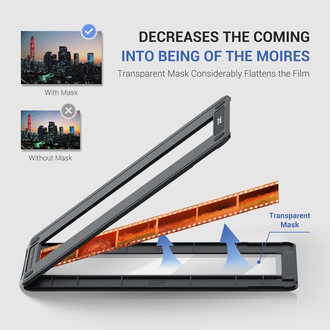 - Die Filmscannermaske hält 35-mm-Negative flach in einem Streifenhalter und ist für Flachbettscanner mit Hintergrundbeleuchtung/Transparenzeinheit geeignet. Der Scanbereich beträgt 9,0x1,1"/ 228,5x 27,9mm.