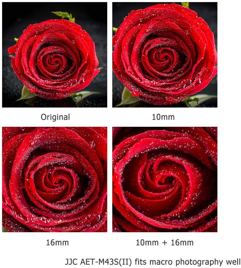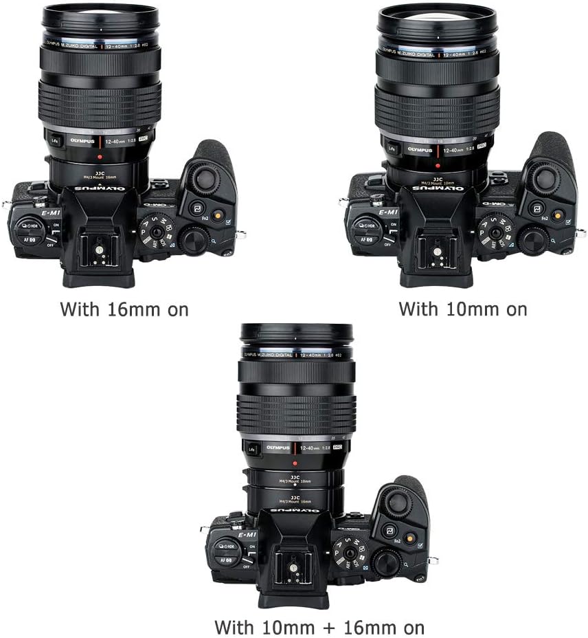 - 10 mm und 16 mm Autofokus (AF) Verlängerungsrohr-Set für Micro Four Thirds Mount (M4/3) Mount Kamera und Objektiv – kann einzeln oder in Kombination verwendet werden, um Ihre Wünsche von Makrofotografie oder Nahaufnahmen zu erreichen.
