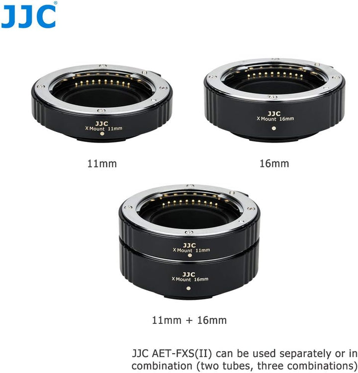 - Mit 11mm und 16mm Längenröhren kann jede Längenröhre einzeln oder zusammen mit 3 verschiedenen Kombinationen verwendet werden. Das 11mm / 16mm Set ist die gleiche Länge wie das Original Fujifilm MCEX-11 / MCEX-16 Autofokus Erweiterungsrohr, das eine