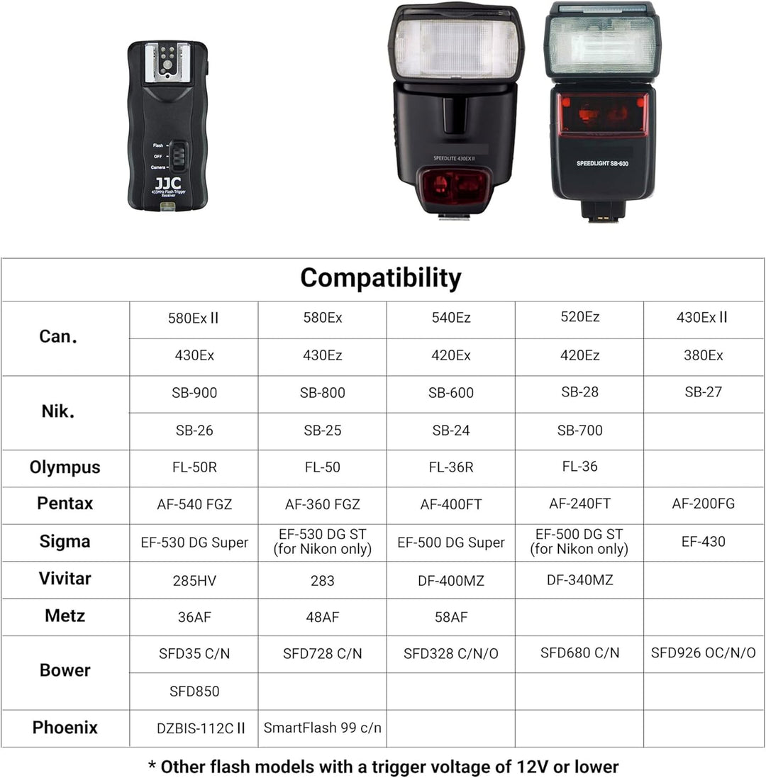 - Kompatibel mit den meisten Blitzen. Detaillierte kompatible Blitzmodelle finden Sie in der Beschreibung.