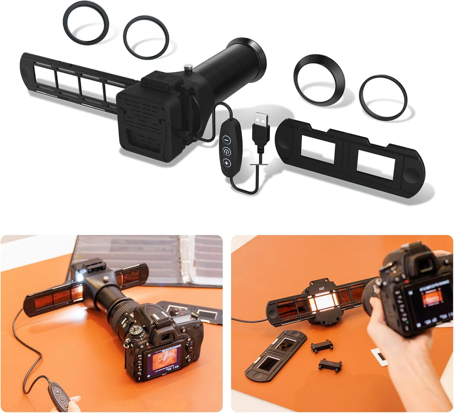 - 【Filmdigitalisierungsadapter】 Speziell für das Kopieren von Negativfilmen entwickelt und konvertiert Filme in digitale Dateien. Er ist ein cleveres Zubehör zum erneuten Fotografieren von 35-mm-Negativen und -Dias. Das Konvertieren des alten Films