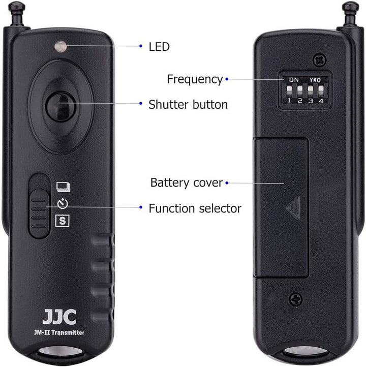 - 433 MHz, 16 Kanäle, MAX. Steuerabstand bis zu 30 Meter, kommt mit dem Kabel Ersatz für Fujifilm RR-100, passt für verschiedene Kameras durch Austausch von JJC Auslöserkabeln.