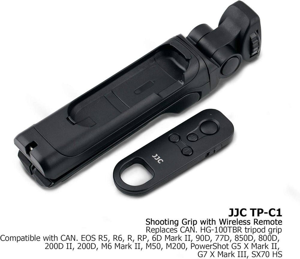 • JJC Aufnahmehandgriff mit abnehmbarer kabelloser Fernbedienung für ausgewählte Canon EOS R100, PowerShot V10, R8, R50, R6 Mark II, R10, R7, R5, R6, R, RP, 6D Mark II, 90D, 77D, 850D, 800D, 200D II, 200D, M6 Mark II, M50, M50 Mark II, M200, PowerShot G5