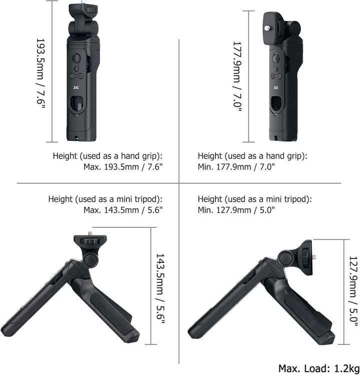 • Der kabellose JJC-Aufnahmegriff ist perfekt, um beide Hände für Vlogging / Reisefotografie / Videografie frei zu lassen. Optimale Stabilität, 180°-Neigungskopf, Panoramadrehung: 360°. Maximale Belastung: 1,2 kg. Schraube: 1/4"-20