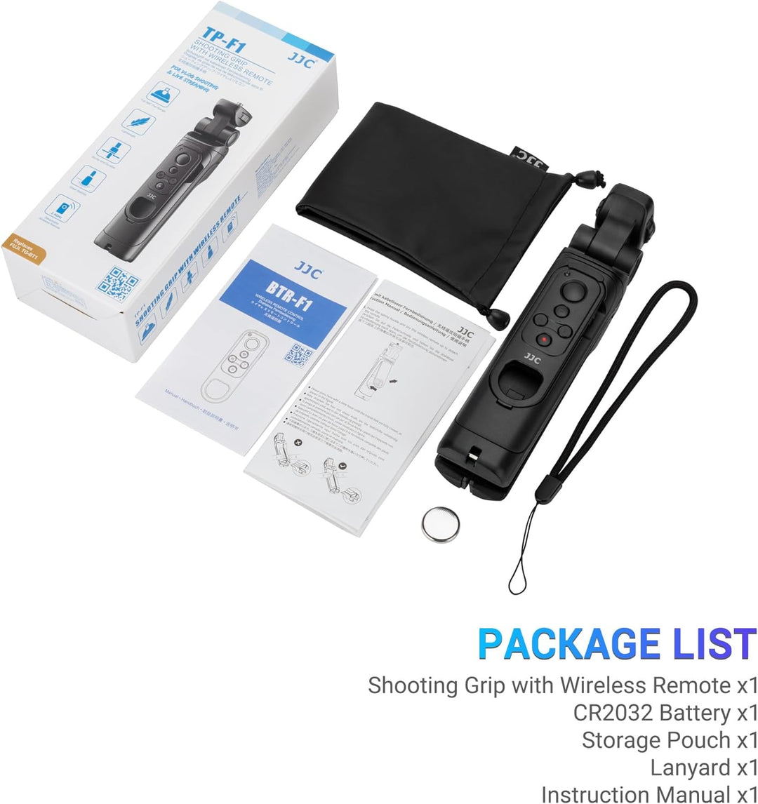 - JJC Der kabellose Kamera-Aufnahmegriff kann als Kameragriff für Handheld-Aufnahmen oder zum Ausklappen als Tischstativ verwendet werden. Es ist ein idealer Begleiter für Vlog-Shooting und Live-Streaming. Hergestellt aus hochwertigem ABS-Material.