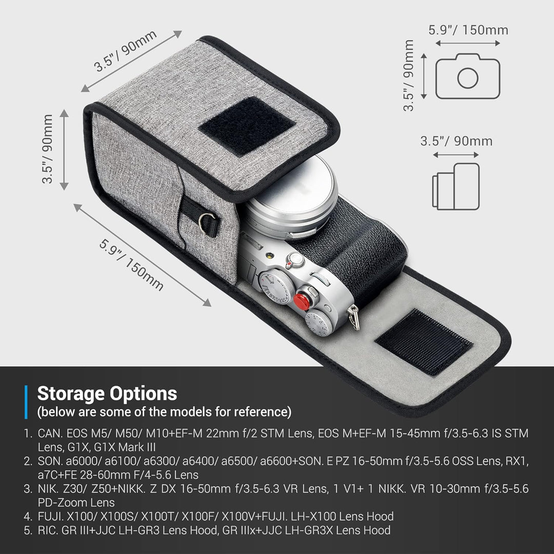 • Kompatibilität: Die Innenmasse der Kameratasche betragen 5,9x3,5x3,5"/ 150x90x90mm. Geeignet für SONY a6700/a6000/a6100/a6300/a6400/a6500/a6600+E PZ 16-50mm f/3.5-5.6 OSS Objektiv (ohne Gegenlichtblende), für NIKON Z30/Z50+NIKKOR Z DX 16-50mm