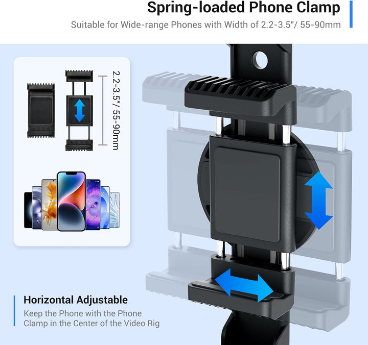 • 【Universell】 Dieser Telefon-Film-Stabilisator ist mit einem federbelasteten Telefonclip ausgestattet – schnell zu greifen und zu lösen, leicht verstellbar. Geeignet für 55-90 mm, wie iPhone 14/14 Pro/14 Pro Max/14 Plus/iPhone 13 Pro/iPhone 13 Pro