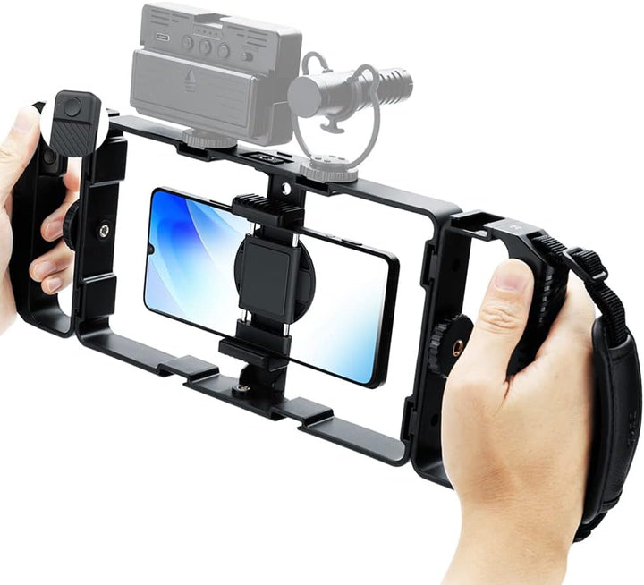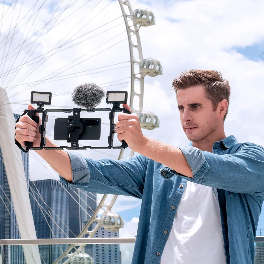 JJC Smartphone Video Rig Fernbedienungs Set mit 6 Kaltschuh Halterungen für iPhone 15 14 13 12 11 Pr