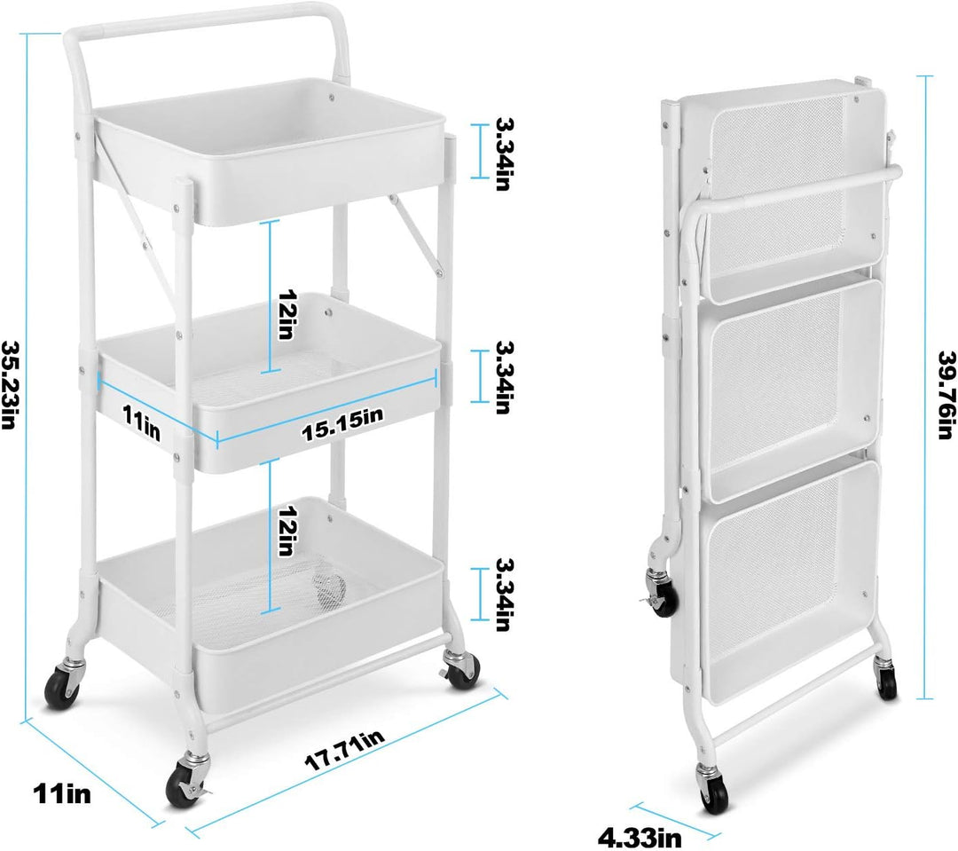 johgee Faltbarer 3-stöckiger Rollwagen aus Metall, zusammenklappbar, mobil, multifunktional, für Zuh