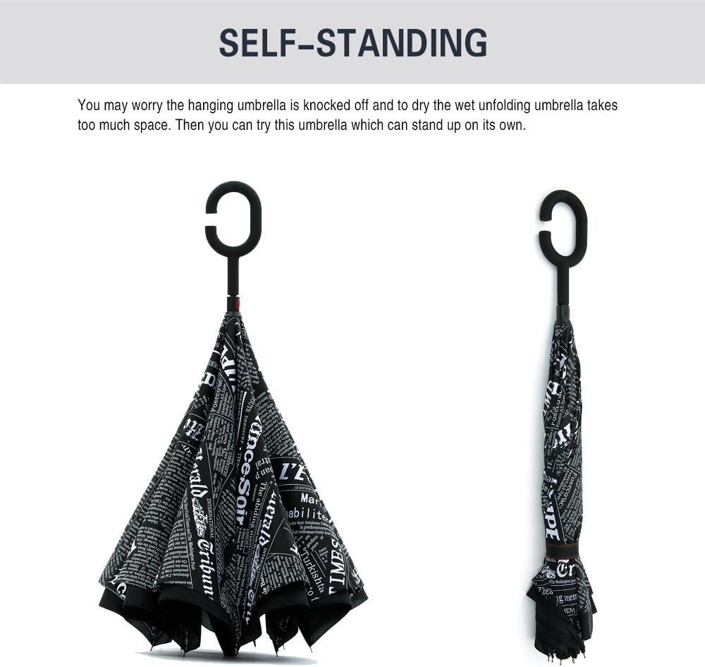 - 【 U-förmiger Griff 】 Gönnen Sie sich die Freiheit, Ihr Handy zu verwenden, ein Buch lesen oder sogar Ihr Kind zu halten, während Sie diesen Regenschirm benutzen. Der C-förmige Griff ermöglicht es Ihnen, den Schirm zu halten, ohne ihn angreifen