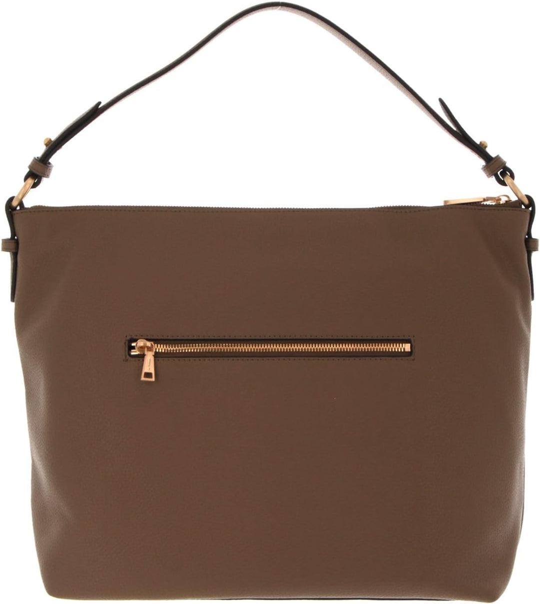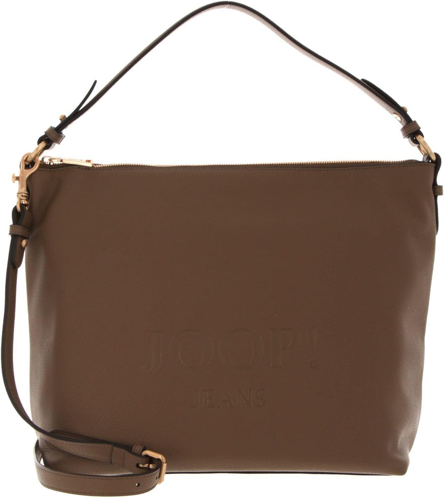 PRODUKTBESCHREIBUNGEN JOOP! Schultertasche in schicker Form Daten Schultertasche: o Masse: Breite ca. 43 cm, Höhe ca. 29 cm, Tiefe ca. 17 cm o Gewicht: ca. 825 g o Farbe: Fungi (Braun) o 1 Henkel abnehmbar: ca. 46 cm o 1 Schulterriemen abnehmbar: ca. 113 cm - 123 cm o Material: Aussen Polyurethan, innen Baumwolle o Lieferumfang: JOOP! Schultertasche mit Etikett, Schulterriemen, Henkel, Anhänger Ausstattung Schultertasche: o Schultertasche wird mit Zipper geschlossen o Im Hauptfach 1 Zipperfach und 1 Einschubfach o Auf der Rückseite 1 Zipperfach o Mit verstärktem Boden ausgestattet o Das JOOP! Logo ist gut sichtbar eingearbeitet JOOP! Lettera Dalia Hobo LHZ - Eine geräumige Schultertasche Einen echten Alltagshelden haben Sie mit dieser JOOP! Schultertasche, im grossen Format, entdeckt. Das geräumige Hauptfach ist gross genug für DIN A4 und bietet genug Platz für all Ihre Utensilien. Die JOOP! Lettera Dalia Hobo LHZ ist mit seinem hochwertigen Material und ihrem schlichten Design ein zeitloser Klassiker, den Sie sicherlich bald nicht mehr missen möchten. Einfach kann sie mit vielen unterschiedlichen Outfits kombiniert werden.