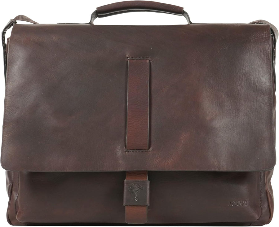 PRODUKTBESCHREIBUNGEN Nicht so leicht austauschbar: Joop Aktentasche bietet ein Fach für Laptops und entwickelt eine charakteristische Patina. Aus Fettleder. * schöne Aktentasche der deutschen Designermarke * aus hochwertigem, glattem Fettleder * mit Organizer und Laptopfach * ein geräumiges Hauptfach, passend für A4-Ordner, schliesst mit Überschlag und 2 Steckverschlüssen * innen ein gepolstertes Laptopfach, Handy-, Einsteck- und Reissverschlussfach sowie 2 Stiftschlaufen * auf der Front ein Einsteckfach * auf der Rückseite ein Reissverschlussfach sowie eine Trolley-Aufsteckfunktion * ein stabiler Tragegriff oben * textiler, stufenlos verstellbarer Schultergurt (Länge: 100-170 cm)