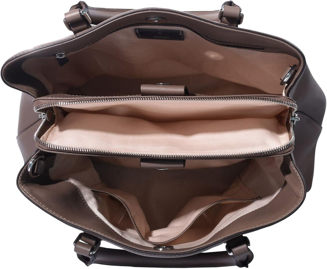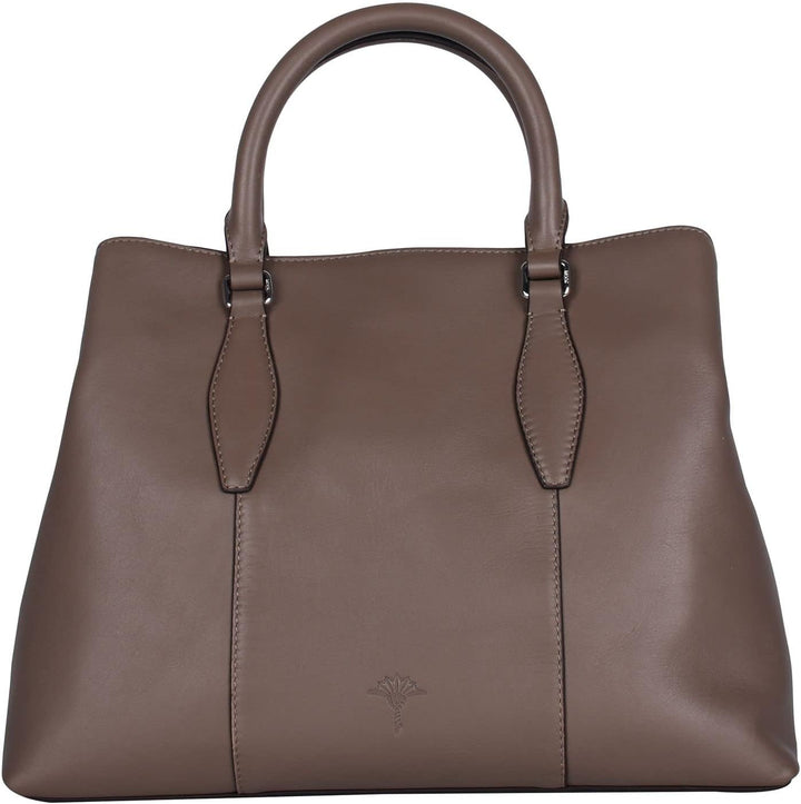 PRODUKTBESCHREIBUNGEN JOOP! Handtasche aus hochwertigem Glattleder Daten Handtasche: o Masse oben: Breite ca. 27 cm, Höhe ca. 26 cm, Tiefe ca. 7 cm o Masse unten: Breite ca. 33 cm, Höhe ca. 26 cm, Tiefe ca. 13 cm o Gewicht: ca. 907 g o Farbe: Taupe (Braun) o 2 Henkel verstärkt: ca. 35 cm o 1 Schulterriemen abnehmbar, stufenlos verstellbar: ca. 89 cm - 145 cm o Material: Aussen Leder o Lieferumfang: JOOP! Handtasche mit Etikett, 1 x Schulterriemen, 1 x Staubbeutel Ausstattung Handtasche: o Handtasche wird mit Zipper und Magnetverschluss geschlossen o Das Hauptfach ist durch 1 Zipperfach in 2 Fächer unterteilt o Im vorderen Hauptfach 2 Einschubfächer o Im hinteren Hauptfach 1 Zipperfach o Mit verstärktem Boden ausgestattet o Besitzt geräumiges Hauptfach o Ist standfest o Das JOOP! Logo ist gut sichtbar eingearbeitet JOOP! Sofisticato 1.0 Emery Handbag M - Eine stilvolle Handtasche mit geräumigem Hauptfach Mit diesem Artikel hat JOOP! ein echtes Prachtstück designt! Das Design der JOOP! Sofisticato 1.0 Emery Handbag M wird mit Sicherheit einige bewundernde Blicke auf sich ziehen. Im Inneren der Tasche können Sie in den zwei geräumigen Hauptfächern all Ihre Habseligkeiten geordnet und sicher verstauen. Dank eines zusätzlichen, verstellbaren Schulterriemens können Sie diesen neuen Liebling auch als Umhängetasche oder lässig Crossover tragen. Schenken Sie sich selbst einen neuen, unvergesslichen Begleiter! Mehr
