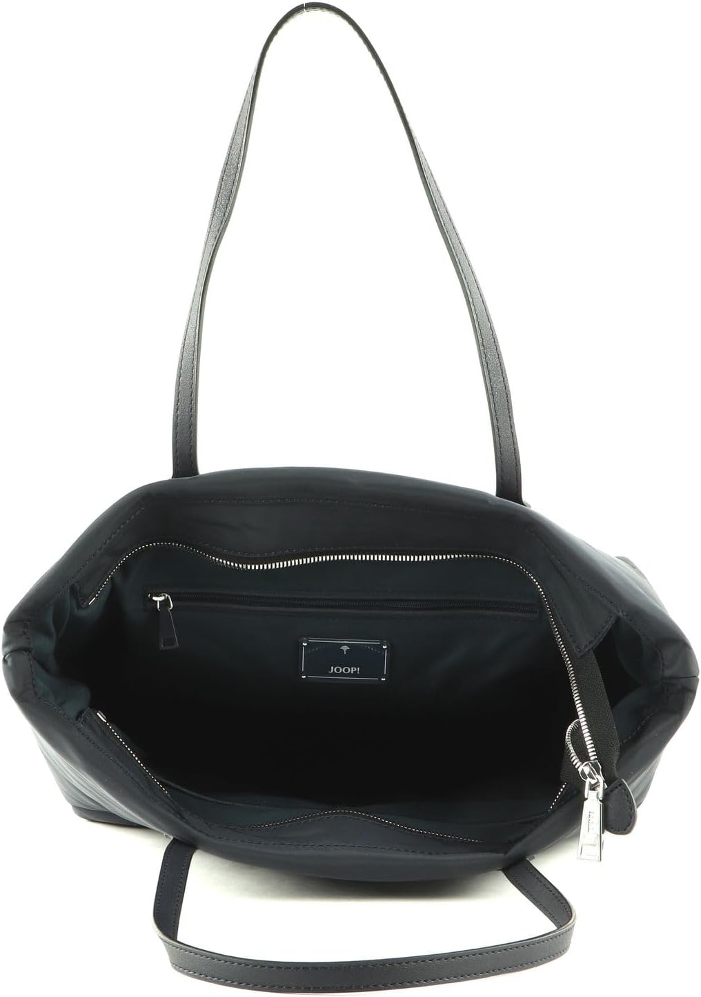PRODUKTBESCHREIBUNGEN JOOP! Shopper in praktischer Aufmachung Daten Shopper: o Masse oben: Breite ca. 42 cm, Höhe ca. 28 cm, Tiefe ca. 4 cm o Masse unten: Breite ca. 32 cm, Höhe ca. 28 cm, Tiefe ca. 15 cm o Gewicht: ca. 480 g o Farbe: Nightblue (Blau) o 2 Henkel: ca. 50 cm o Material: Aussen Nylon o Lieferumfang: JOOP! Shopper mit Etikett Ausstattung Shopper: o Shopper wird mit Zipper geschlossen o Im Hauptfach 1 Zipperfach und 2 Einschubfächer o Mit verstärktem Boden ausgestattet o Ist gross genug für DIN A4 o Ist standfest o Besitzt geräumiges Hauptfach o Das JOOP! Logo ist gut sichtbar eingearbeitet JOOP! Tessuto Inverno Lara Shopper - Der geräumige Shopper in geschickter Form Ein echter Alltagsheld ist dieser schicke JOOP! Shopper im grossen Format. Das geräumige Hauptfach ist gross genug für DIN A4 und bietet genug Platz für all Ihre Utensilien. Der JOOP! Tessuto Inverno Lara Shopper zeichnet sich durch hervorragende Qualität aus und dank dem verstärkten Boden ist die Tasche standfest. Diese Schultertasche ist ein Muss für alle modebewussten Frauen und sollte in keiner Taschensammlung fehlen. Mehr