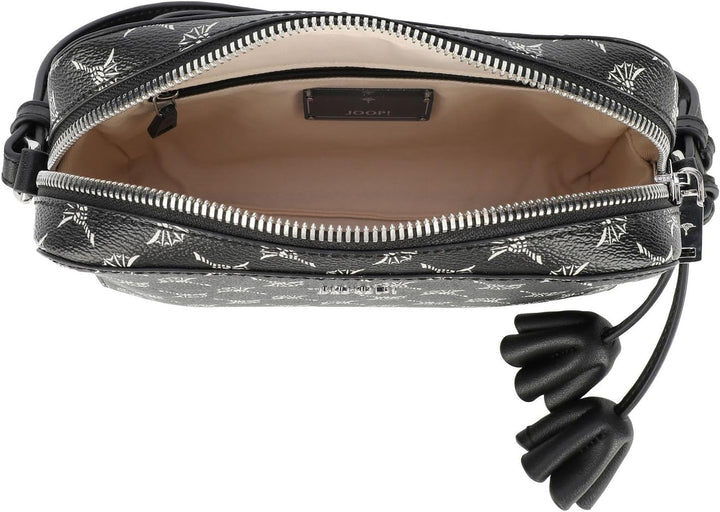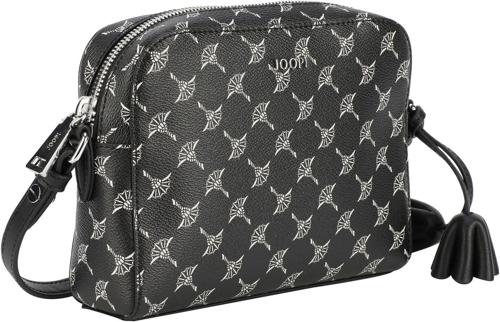 PRODUKTBESCHREIBUNGEN Die Joop Cloe Schultertasche präsentiert sich im smarten, femininen Format und ist eine trendige Ergänzung zu Ihrem Outfit. Das langlebige und strapazierfähige Synthetikmaterial in Narbenleder-Optik mit Conflower-Print ist ein rein veganes Produkt und vereint Bewusstsein mit Stil. - Komfortable Grösse rechteckige, oben abgerundete Form - Reissverschluss-Öffnung oben - zarter, längenverstellbarer Schultergut in kontrastierender Glattleder-Optik - 1 Reissverschlussfach - 1 Steckfach innen - metallischer JOOP!-Schriftzug auf der Front silberfarbige Metall-Details