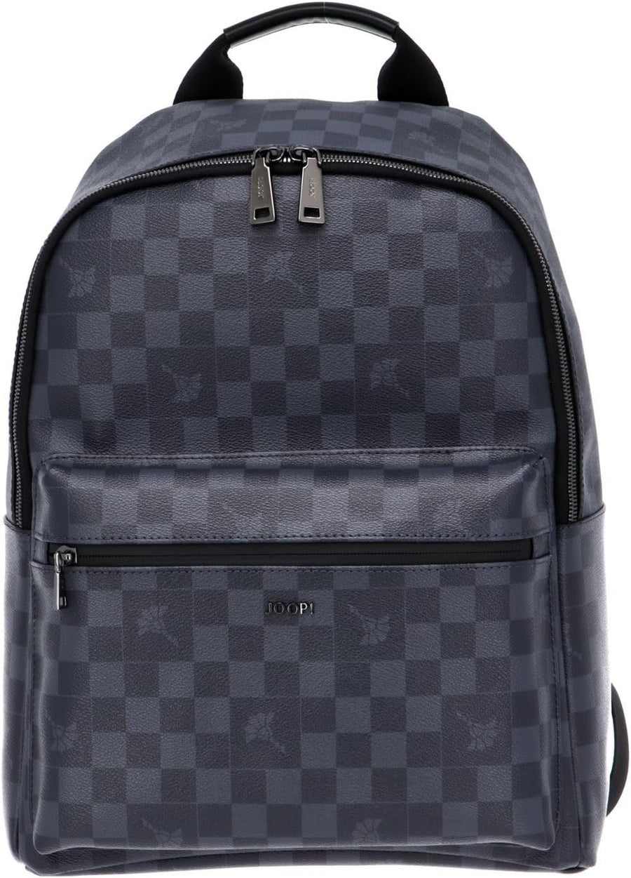 PRODUKTBESCHREIBUNGEN Die perfekte Wahl für den Alltag oder auf Kurztrips: Der Rucksack Cortina Piazza Miko von JOOP! hält mit geräumigem Hauptfach viel Platz für die Essentials parat - ergänzt durch ein Innenfach mit Klettverschluss, in dem beispielsweise das Tablet verstaut werden kann. Edles Kunstleder mit Schachbrett-Allover - akzentuiert durch markentypische Cornflowers - verleiht dem Backpack eine stilvolle Optik. - moderner City-und Travel-Rucksack - mit oberem Tragehenkel - mit 2-Wege-Reissverschluss und Logo-Anhänger zu schliessen - Innenfach mit Zip-Tasche mit JOOP! Plakette und einem Business-Fach mit Klettschliesse - Fronttasche mit Zipper und Metallic-Logo-Schriftzug - längenverstellbare, gepolsterte Schulterriemen