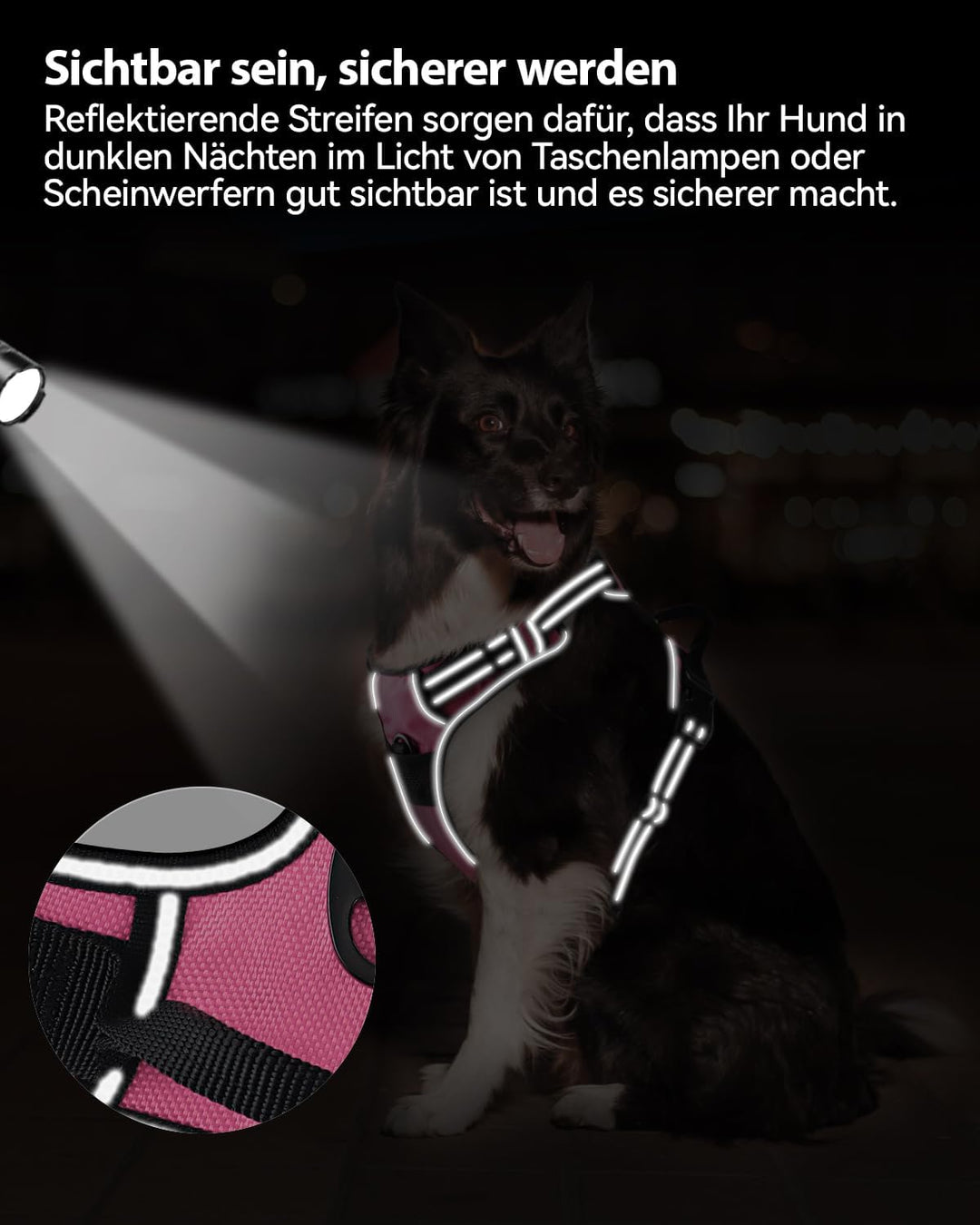 - Praktische Kontrolle: An der Oberseite befindet sich ein weicher Griff, an dem Sie sich festhalten können, um die Kontrolle über Ihren Hund zu behalten, wenn er durchdreht oder Hilfe braucht. Es kann Hunde leicht zurückhalten und ist auch praktisch,