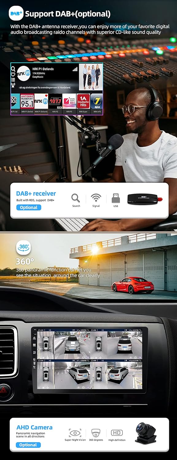 - 【DSP - CARPLAY - ANDROID AUTO】 DSP verfügt über einen volldigitalen Prozessorchip und einen 64-Bit-Modus mit doppelter Genauigkeit. Geniessen Sie VIP-Soundeffekte an verschiedenen Orten, je nach Ihren Bedürfnissen. Eingebaut in Karpus und Android