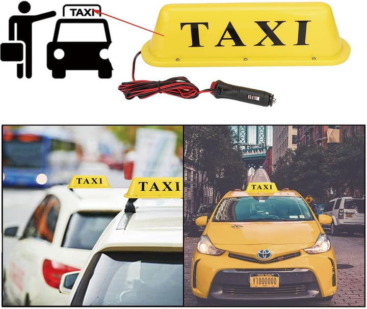 - [Taxi Schild]: Grosser und stabiler Chip, Wasserdichtes und sonnenfestes Design, Magnetfuss, einfache Befestigung auf dem Dach; Passend für alle Arten von Fahrzeugen mit 12 V; Keine Verzögerung bei der Beleuchtung, viel sicherer, verhindert die Gefahr