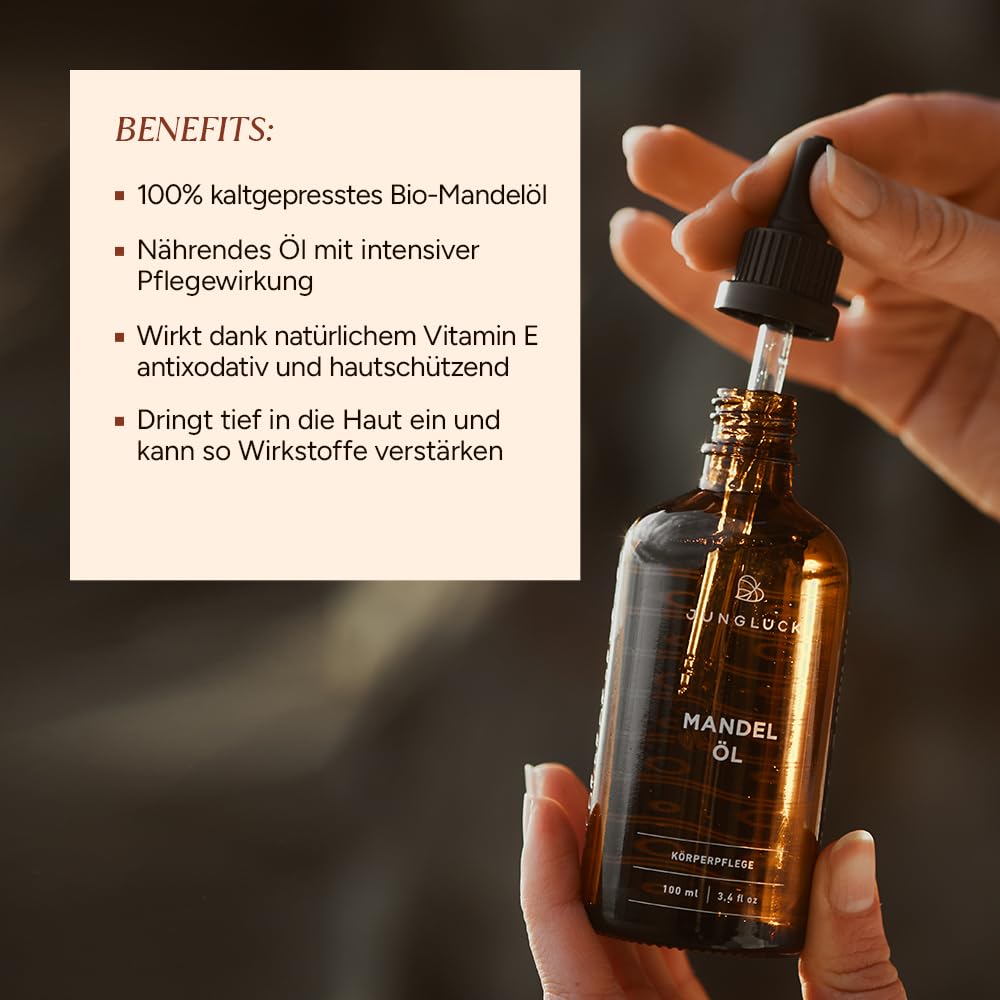 - PRODUKTINFO: Unser Mandelöl aus kontrolliert biologischem Anbau ist dank seiner reichhaltigen und nährenden Eigenschaften ideal für trockene bis sehr trockene Haut geeignet. Wirkt dank natürlichem Vitamin E antixodativ und hautschützend.