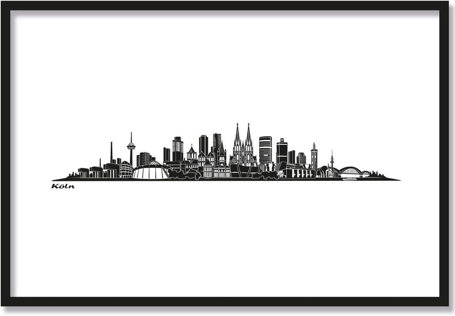 Variante: S mit Rahmen Weiss | 21x30 cm Skyline Köln
