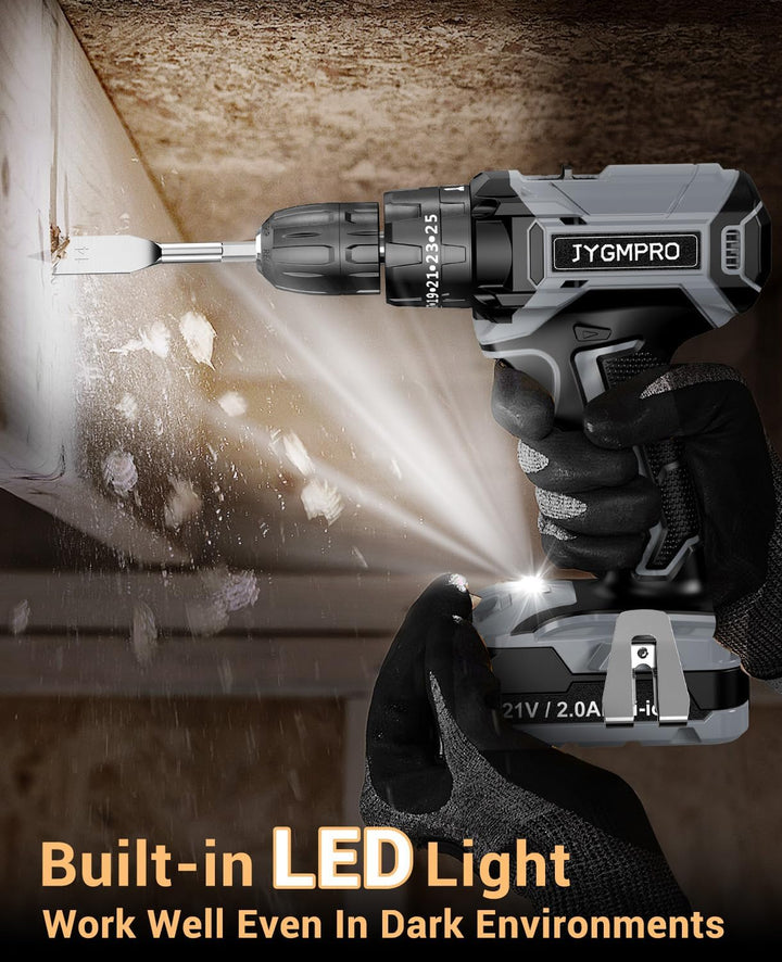 - 【3-in-1 System mit 42Nm Drehmoment】Der JYGMPRO Akku Bohrmaschine bietet 3 Arbeitsmodi – Schrauben, Bohren und Schlagbohren. Mit einem beeindruckenden Drehmoment von 42Nm bewältigt dieser Kombibohrer mühelos diverse Bohr- und Schraubenaufgaben in