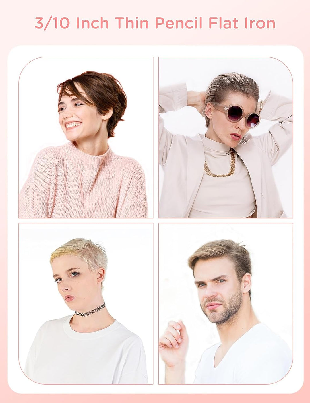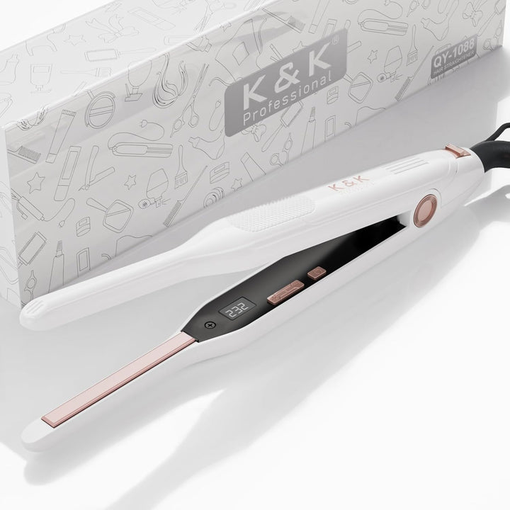 - Das K&K-Bleistifteisen wurde speziell für kurzes Haar, Pixie-Cut und Pony entwickelt. 0,3 Zoll dünnere Platten erleichtern das Erreichen der Haarwurzeln.