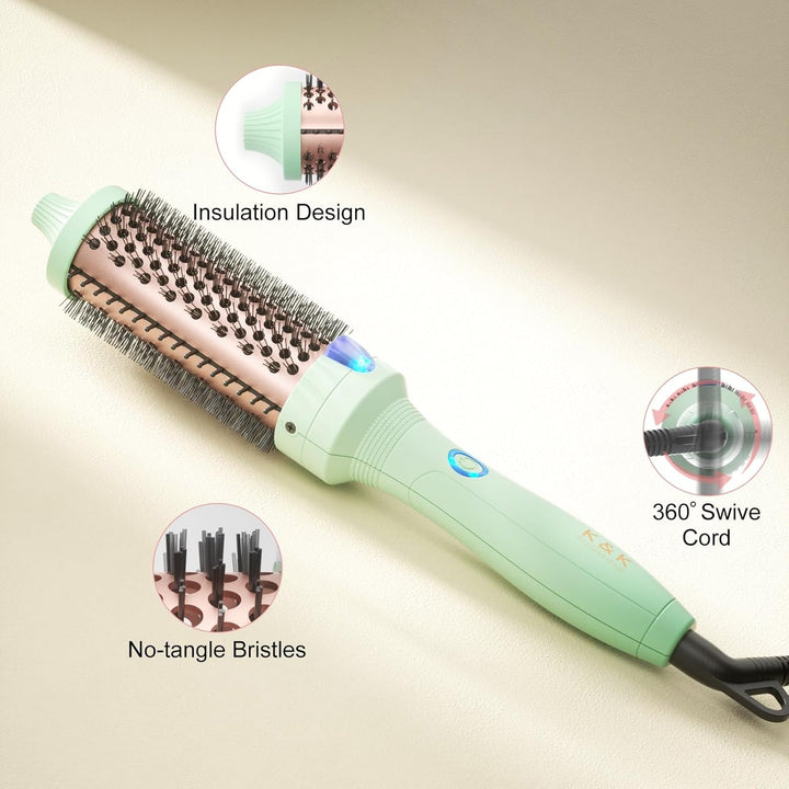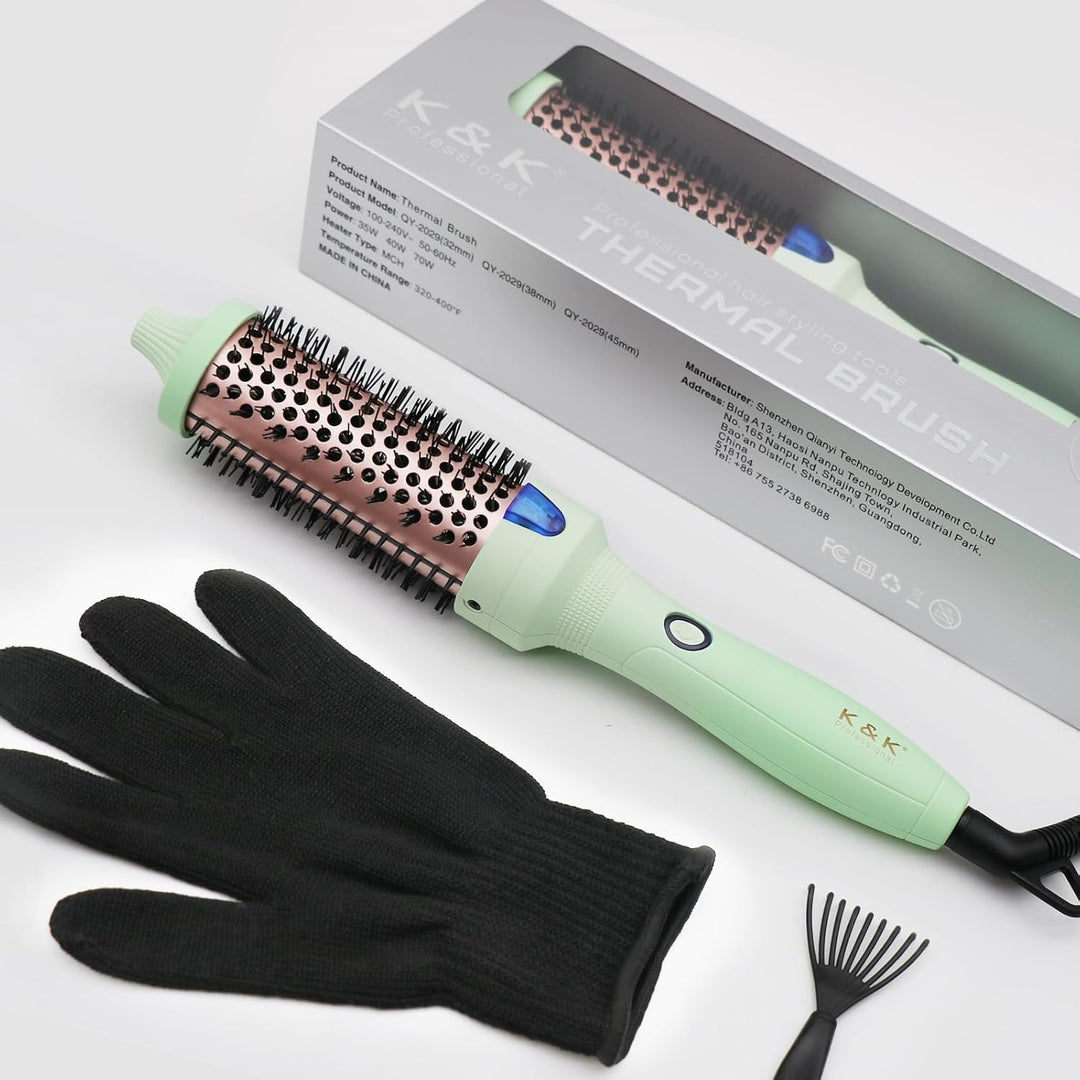 - K&K Ionic Hot Curl Brush: Diese Bürste verfügt über eine Super-Ionen-Generierung, um statische Aufladung zu beseitigen und Frizz zu bändigen, und ihr rotgoldener Titanschaft in 3 Grössen mit Nylonborsten ist ideal für die Kreation weicher, seidiger