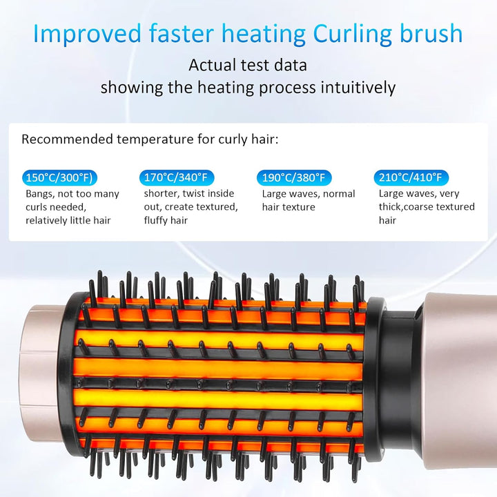 - 30 Sekunden schnelles Aufheizen: Die fortschrittliche Keramikplatten-Heiztechnologie wird verwendet, um die Lockenstabbürste schnell aufzuheizen, die innerhalb von 30 Sekunden schnell eine relativ heisse Temperatur erreichen kann. Sie erwärmt sich