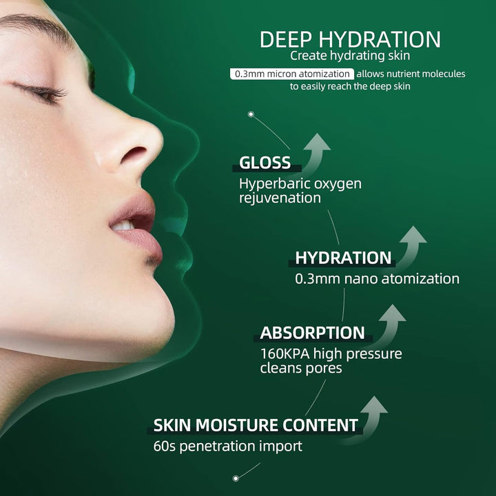 - 【SCHÖNHEITSMASCHINE】 0,3-mm-Düse mit 160-kPa-Hochdruckzerstäuber, der Nährstoffmoleküle in Nanopartikel umwandelt und so die Basalschicht erreicht, die Haut mit Feuchtigkeit versorgt und aufhellt. 1 SPRÜHMASKE≈5. Masken, Toner, Seren...