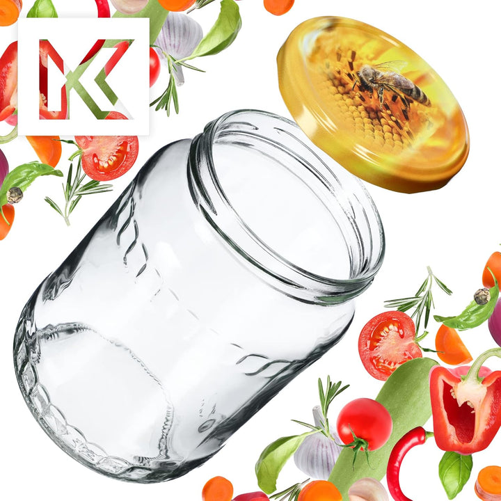 - FUNKTIONAL – die Konservengläser haben angepasste einfarbige Deckel, Deckel mit bunten Mustern und mit dem Obst-Gemüse-oder Imkermotiv. Die Einkochgläser mit Deckeln eignen sich für saure Gurken und Essiggurken, Pilze, Marmeladen, Kompott,