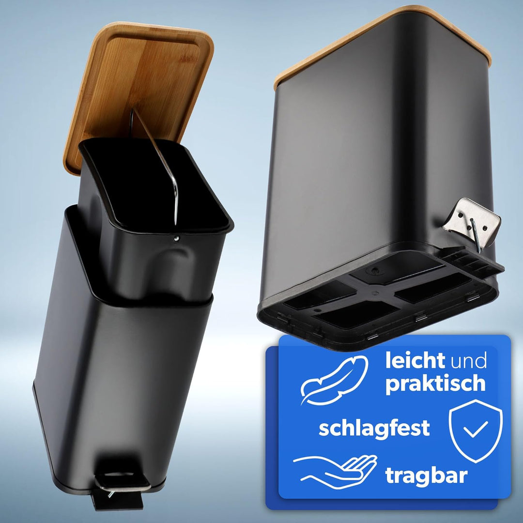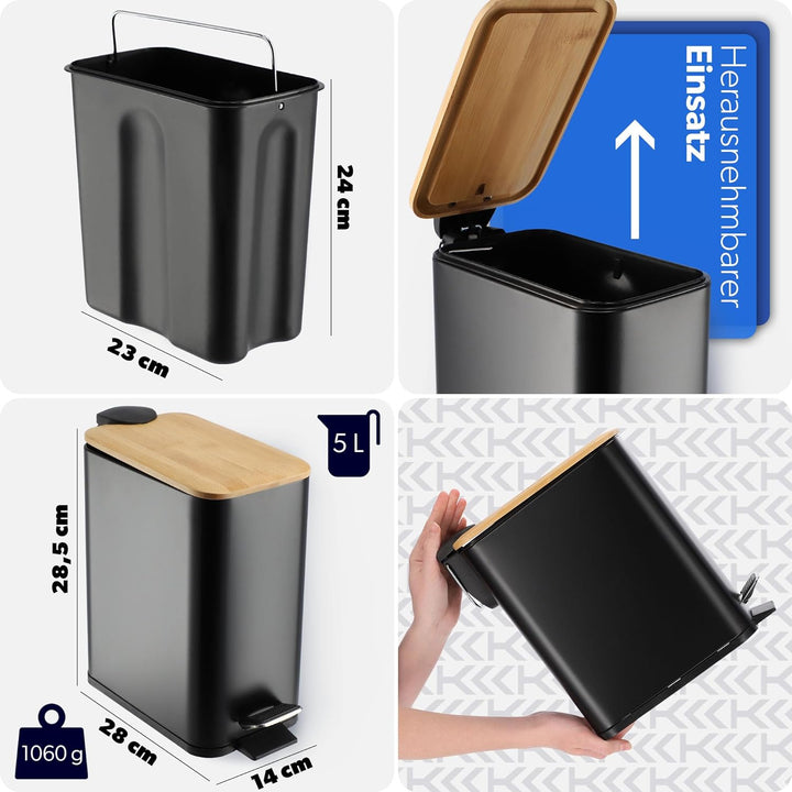 - 🗑️IN DEINER WOHNUNG GENIEssEN PRAKTISCHE UND NIEDLICHE LÖSUNGEN BESONDEREN STELLUNGSWERT? Dann ist unser aus einem Designer-Bambusholz gefertigte Abfallbehälter der Marke KADAX mit einem Fassvermögen von 3 und 5 Litern genau das Richtige für Dich. Ein Bombeneimer, der sich blitzschnell in die Gegebenheiten Deiner Küche, Vorzimmer oder Büro einfügt. Dieser Behälter mit einem Inneneimer erhöht auch den Komfort in Deinen Räumlichkeiten und macht Dich zum einem Saubermännchen wie aus dem Bilderbuch!