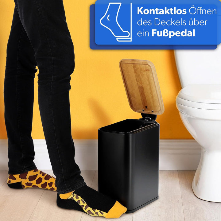 - 🗑️MACH PLATZ FÜR FUNKTIONALITÄT DER EXTRAKLASSE UND KAUF DIESEN WUNDEREIMER MIT VOLLAUSSTATTUNG. Der Innenkübel bietet reichlich Platz für den sich im Laufe des Tages ansammelnden Abfall, der praktische Handgriff erleichter das Leeren. Einfacher geht’s kaum, oder? Das bequeme Fusspedal ist ein weiteres aufregendes Feature - nach seinem Betätigen geht der Deckel wie von Zauberhand auf. Somit brauchst Du zum Wegwerfen vom Abfall den Eimer nicht mal berühren.