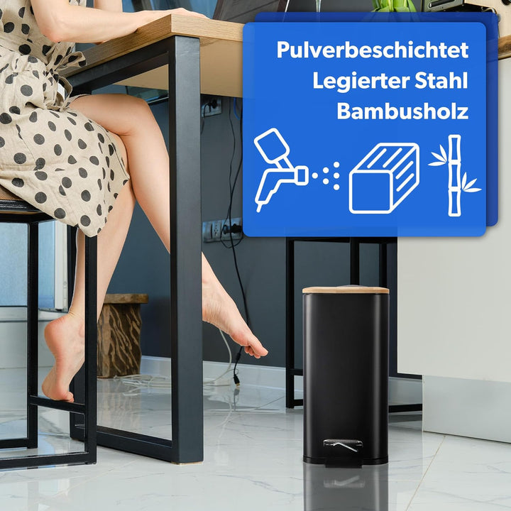 - 🗑️EIN NEUES WOW-EFFEKT FÜRS ZUHAUSE GEFÄLLIG? Unser Eimer mit Bambusdeckel bietet Deiner Küche eine Note reines Charmes. Das wunderschön schillernde Holz ist eine hervorragende Ergänzung einer modern gestalteten Wohnung. Du schlägst zwei Fliegen mit einer Klappe: einerseits sicherst Du Dir einen praktischen Eimer, andererseits kommt eine Designerdeko frei Haus geliefert. Die Farbgebung kommt besonders in Gefolgschaft von Küchen- oder Badeutensilien zur Geltung, mit Sofortwirkungsgarantie!