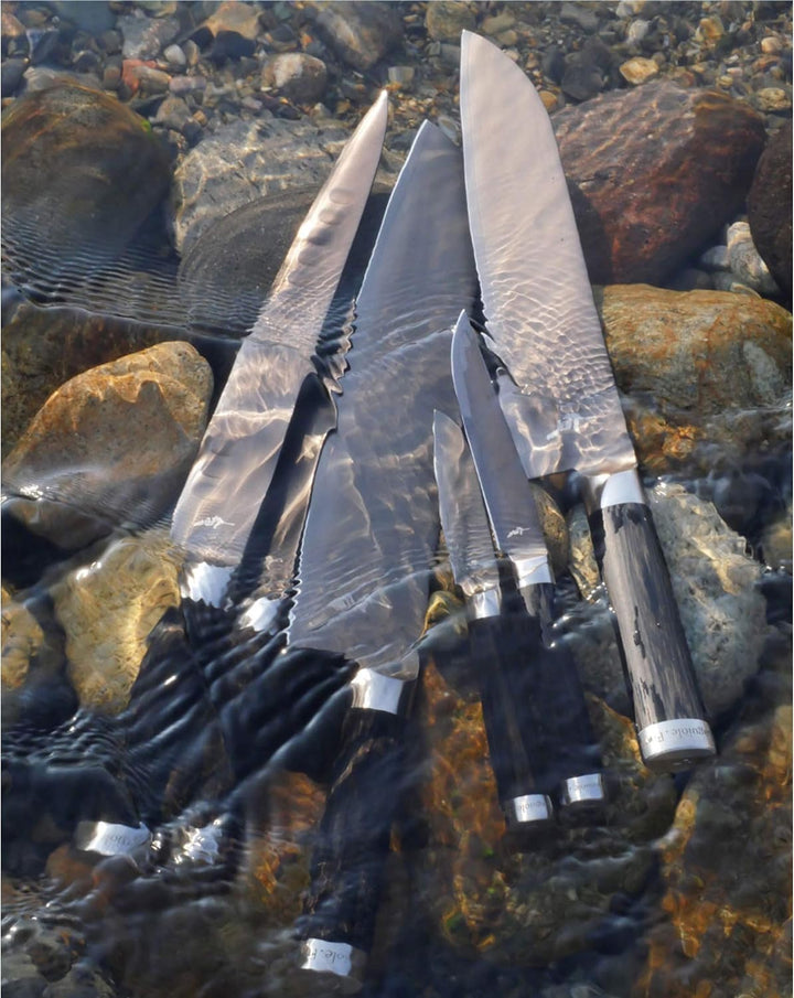 - Griffmaterial: Pakka-Holz, laminiert, Klingenmaterial: 3 Lagen Stahl