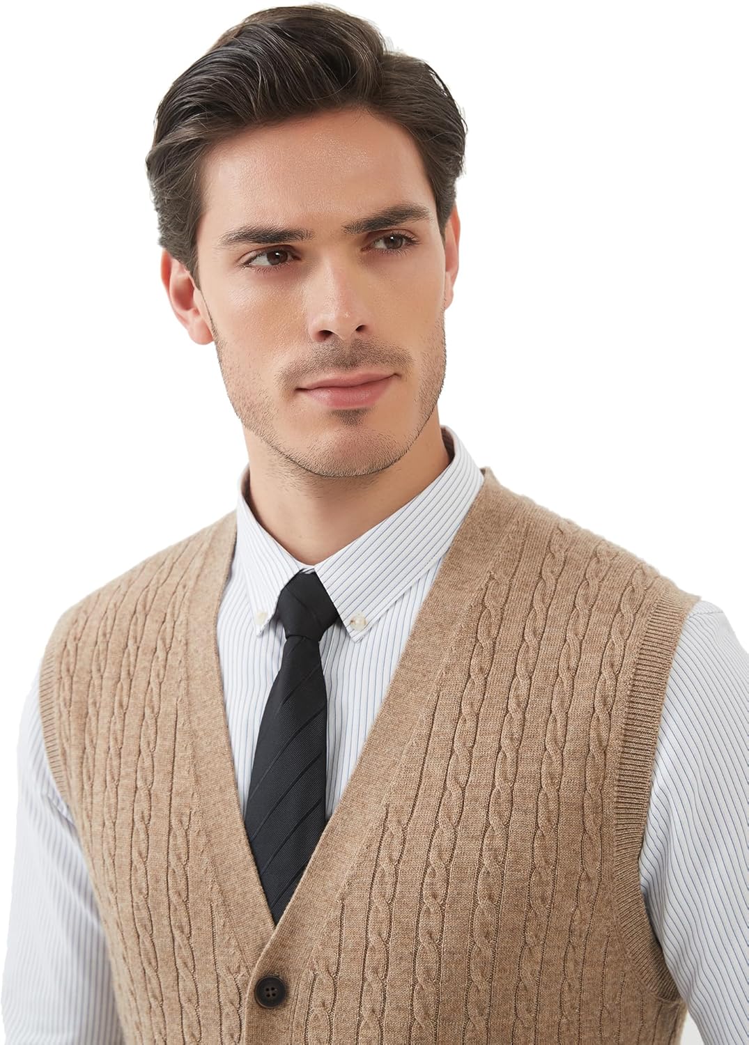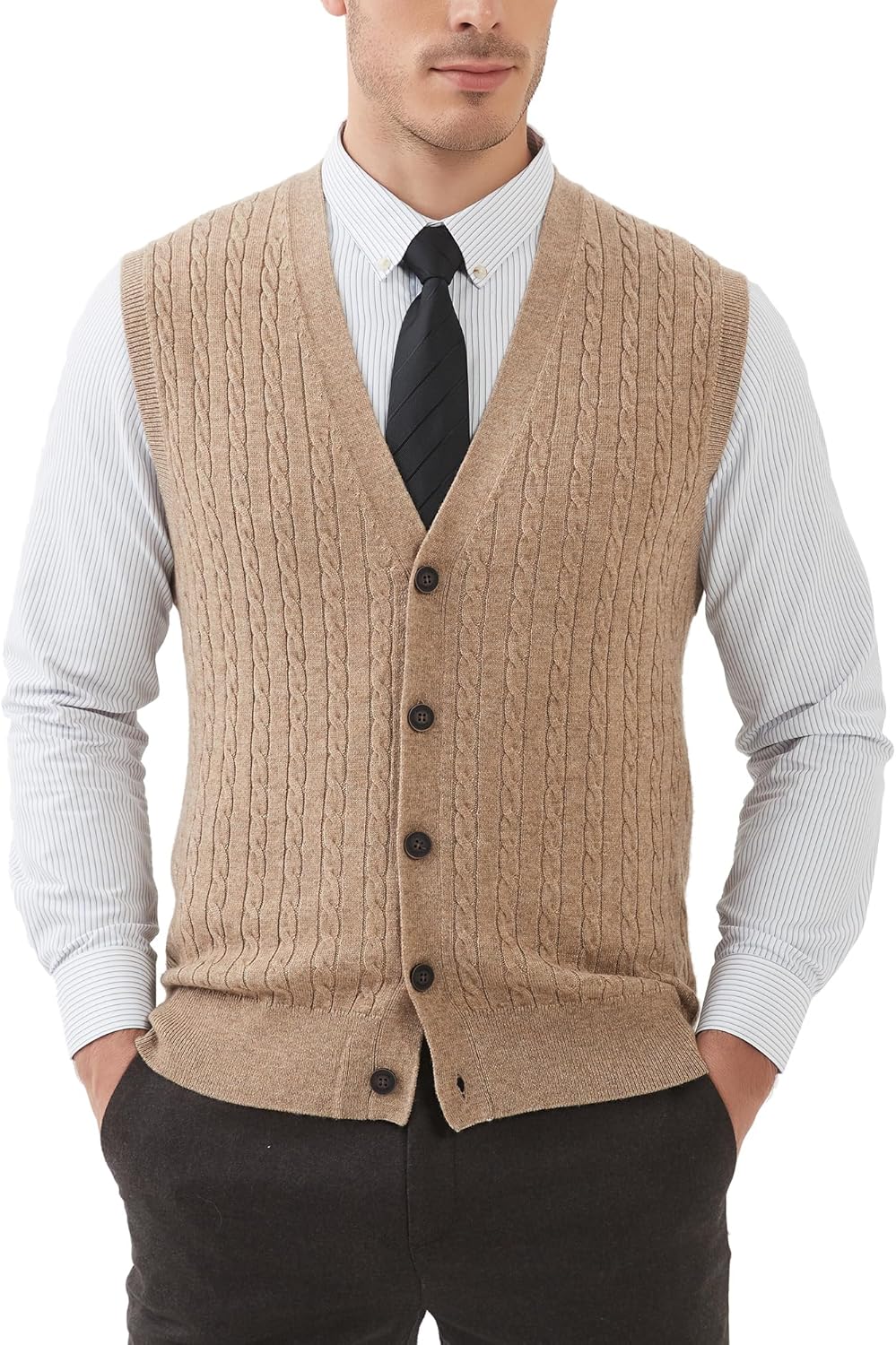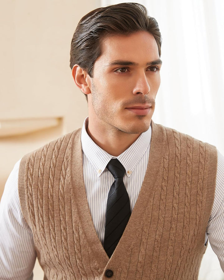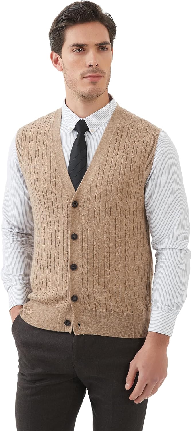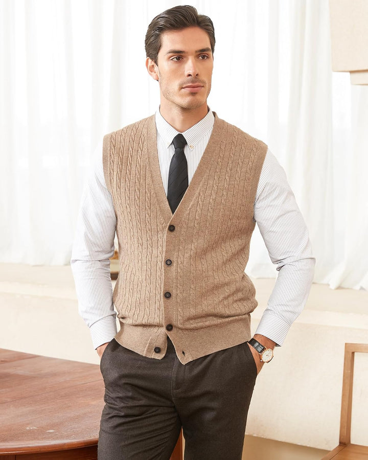 Kallspin Herren Strickweste Ärmellos Cardigan Wollmischung mit Zopfmuster und Knöpfen S Kaffee, S Ka
