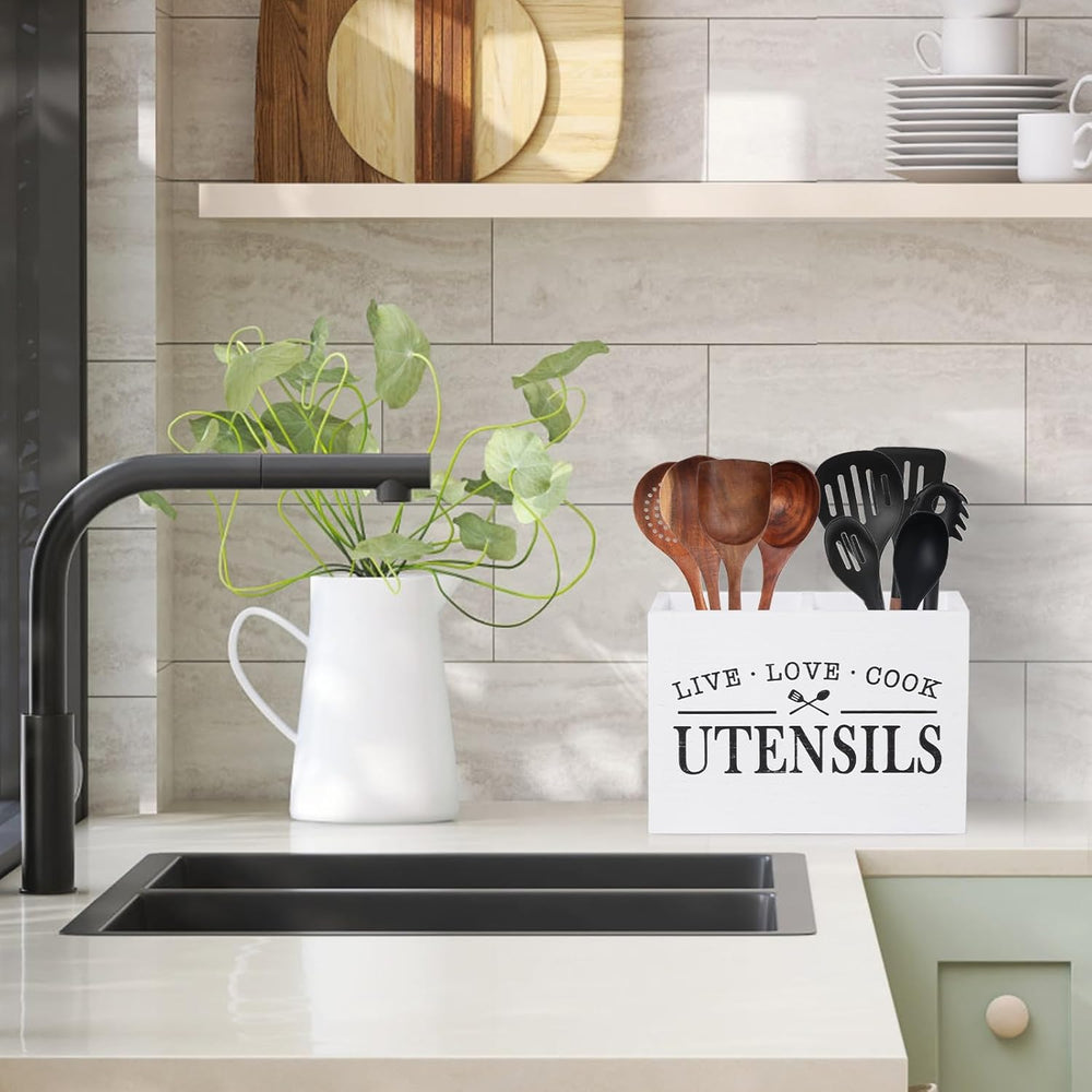 - Grosser Utensilienhalter: Der Utensilien-Organizer aus Massivholz verfügt über 2 Fächer, so dass Sie alle Ihre Kochutensilien leicht und ordentlich zur Hand verstauen können. Es wird in Ihrem Zuhause auf der Küchentheke schön aussehen.
