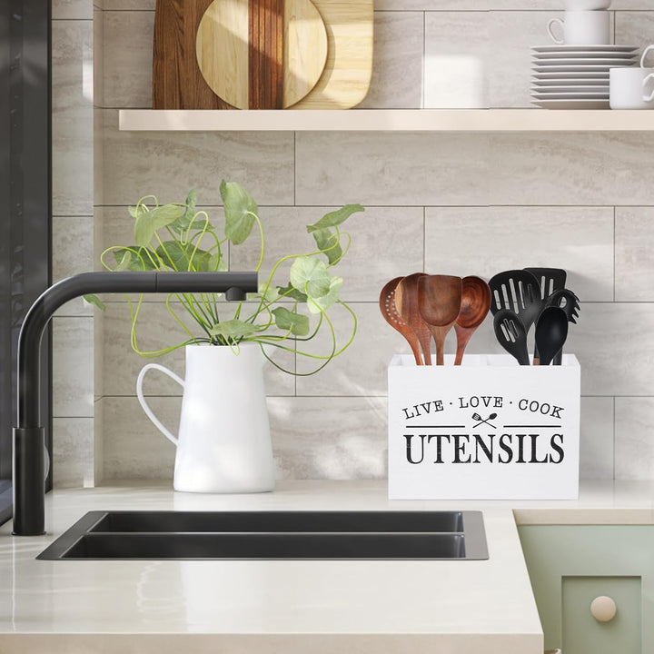 - Länderdekorativ: Der rustikale Utensilienhalter ist die perfekte Note für Ihre Küchenarbeitsplatte, Bauernhausdekoration, die ländlichen Charme in Ihrem Zuhause hervorruft.