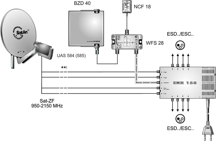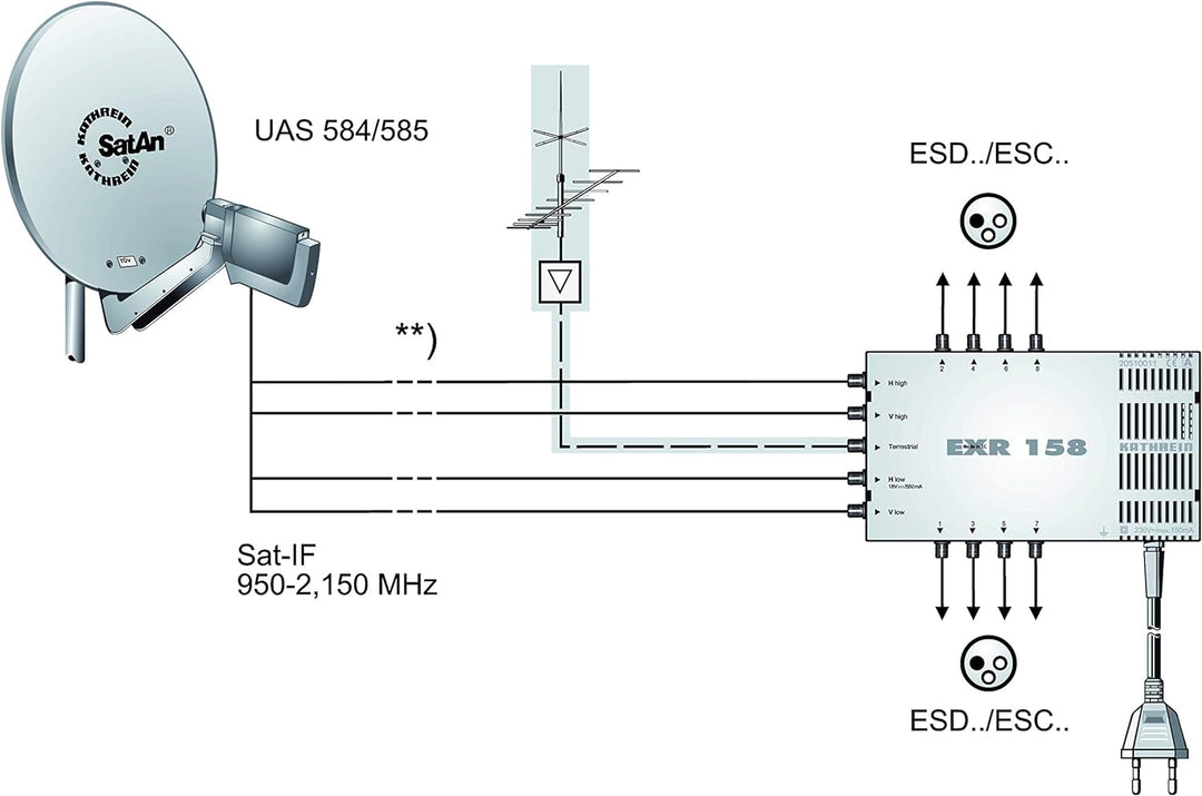 - Kathrein EXR 158 SAT Multischalter Eingaenge (Multischalter): 5 (4 SAT/1 terrestrisch) Teilnehmer-An