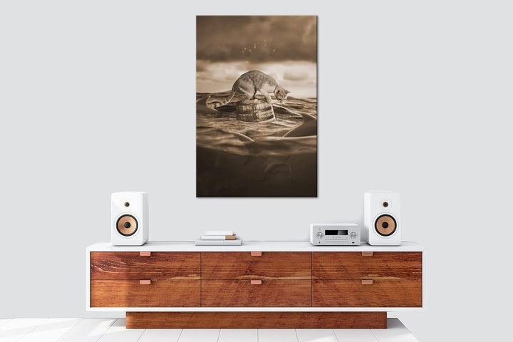 deyoli Katze im Hai verseuchten Gewässer Format: 80x60 Effekt: Sepia als Leinwandbild, Motiv fertig