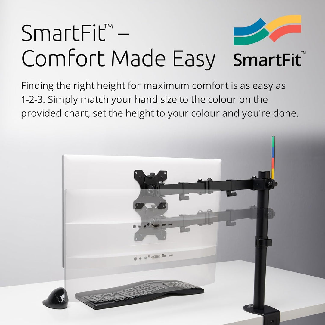 - Ergonomische Höheneinstellung mit SmartFit: Einmalige Zuordnung der Handgrösse zu Farbcode auf der mitgelieferten Tabelle, Farbcode bietet kinderleichte Einrichtung der optimalen Bildschirmhöhe