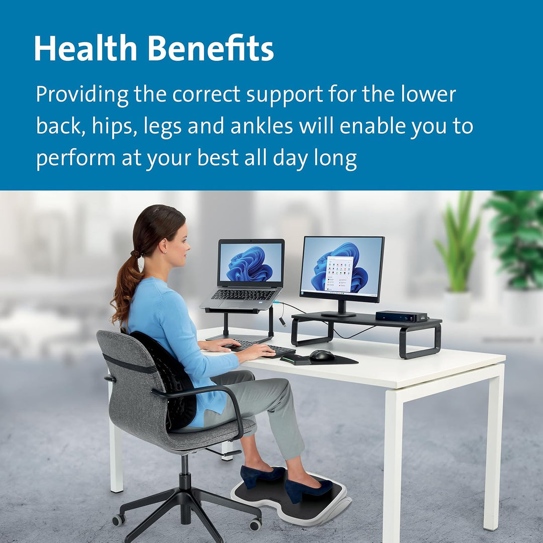 - Erhöht die Beine – Dank der Fussstützen werden Ihre Beine hochgehalten, während Sie am Schreibtisch sitzen. Dadurch wird sowohl Ihre Haltung als auch Ihre Durchblutung verbessert und jeglicher Druck auf den unteren Rücken wird reduziert