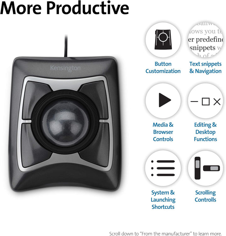 - Lieferumfang: 1 x Kensington Expert Mouse Trackball mit Kabel, 55 mm Kugel, Schwarz, 64325