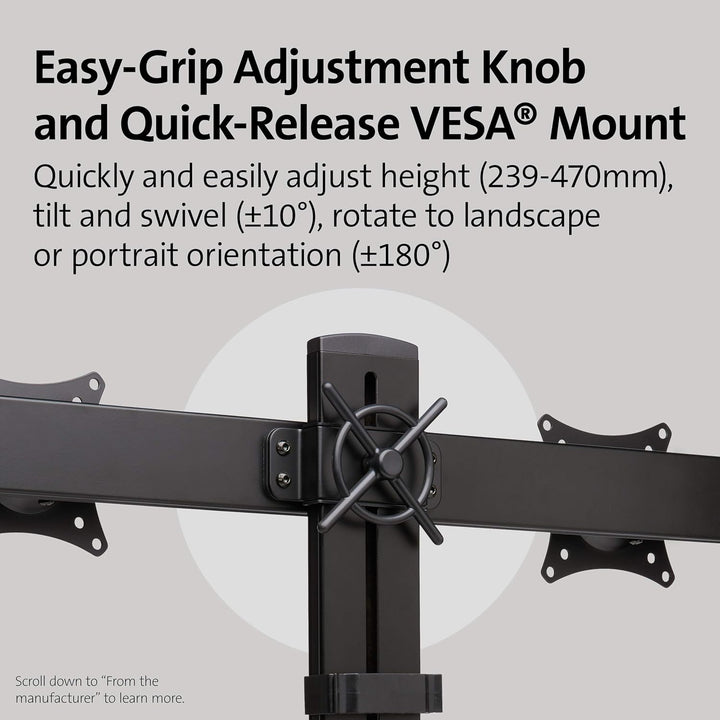 - Flexible Einstellungen: praktisches Design für einfache Höheneinstellung (239-470 mm), Neigen und Schwenken (± 10°), Ausrichtung ins Quer- oder Hochformat (± 180°) und Arretierung des Monitors
