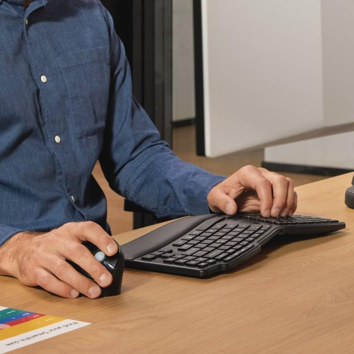 - Die ergonomisch geformte vertikale Maus mit natürlichem Neigungswinkel (46,7°) hält das Handgelenk in einer neutralen Position, reduziert den Druck auf das Handgelenk, Belastungen und Schmerzen