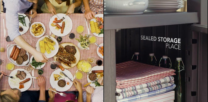 - BBQ Tisch inkl. Besteckhaken, Küchenrollenhalter und Gewürzregal