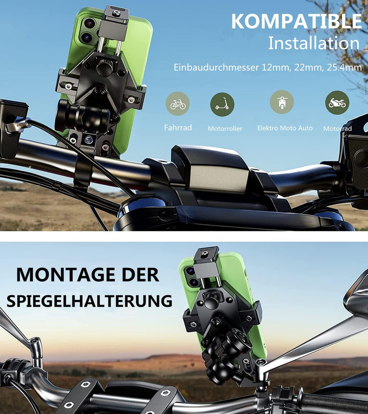 - 【Einfach zu Installieren】 Das Paket enthält eine lenkerbasis und eine rückspiegel montagebasis. Sie können das telefon nach Belieben am lenker oder an der rückansicht montieren. Die lenkerhalterung für motorrad handyhalterung ist für lenker mit
